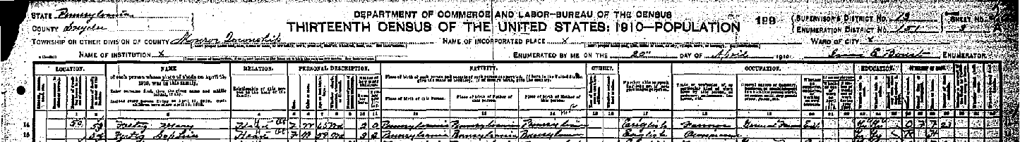 RECORDED IN THE 1910 PA CENSUS