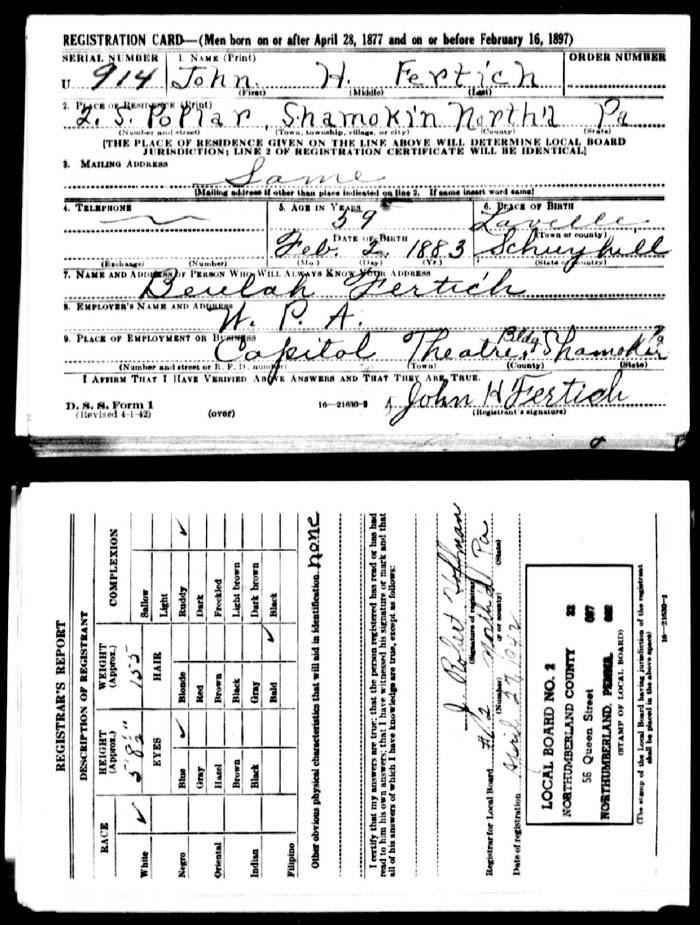 WORLD WAR II DRAFT REGISTRATION CARD
