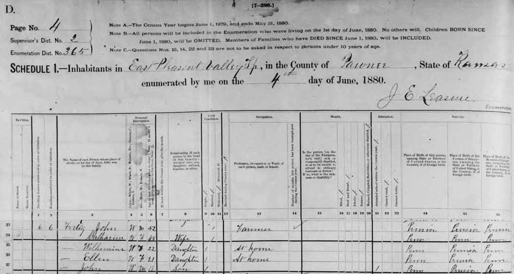 RECORDED IN THE 1880 KS CENSUS