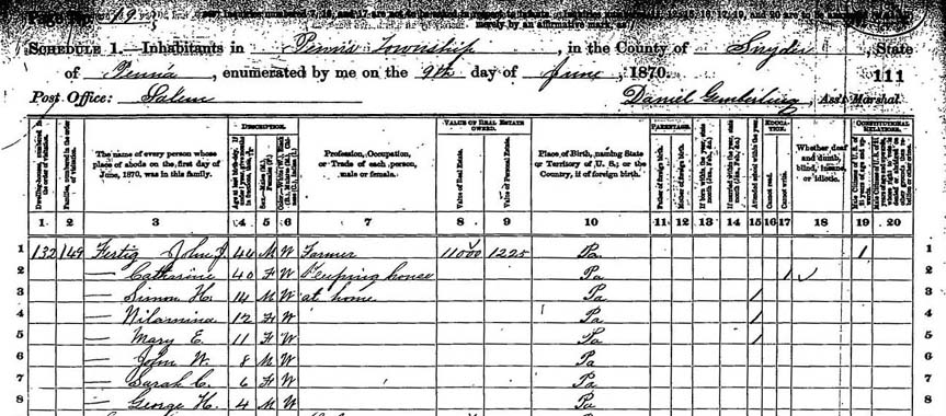 RECORDED IN THE 1870 PA CENSUS