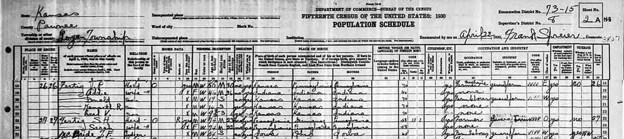 RECORDED IN THE 1930 KS CENSUS