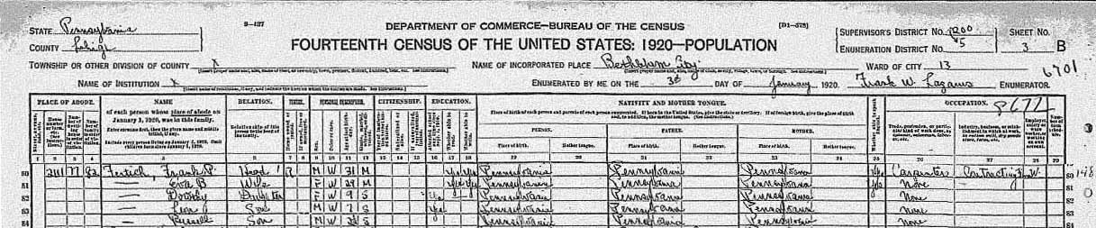 RECORDED IN THE 1920 PA CENSUS