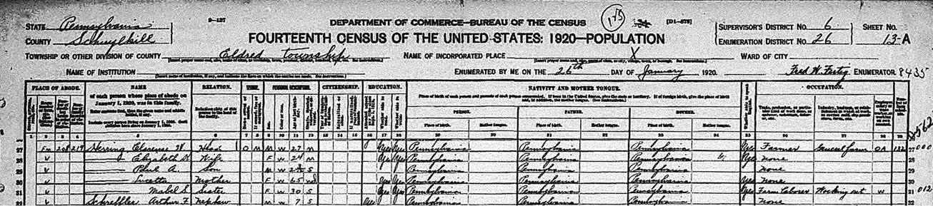 CLARENCE WAYNE HERRING & KATIE ELIZABETH 'LIZZIE' DEITRICH RECORDED IN THE 1920 PA CENSUS
