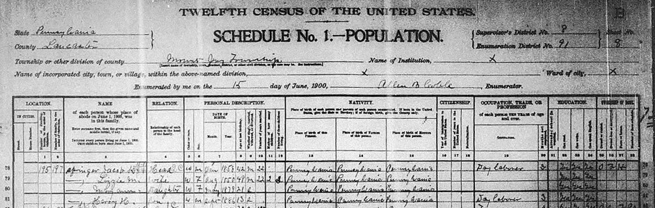 JACOB 'JAE' SPRINGER & ELIZABETH 'LIZZIE' IN 1900 CENSUS