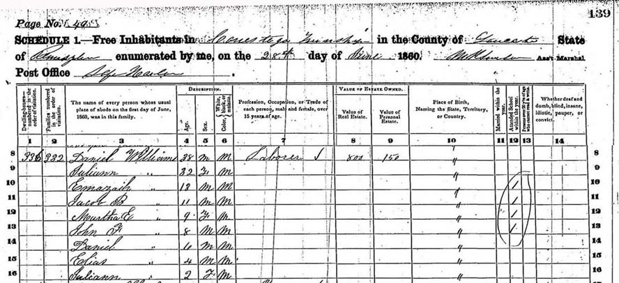 RECORDED IN THE 1860 PA CENSUS